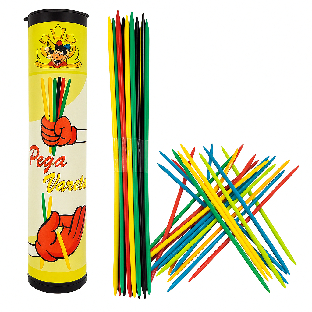 Reviva a nostalgia com o tradicional Jogo Pega Varetas! Um brinquedo educativo e divertido que desenvolve coordenação motora, concentração e paciência nas crianças, além de garantir momentos de diversão para toda a família.
